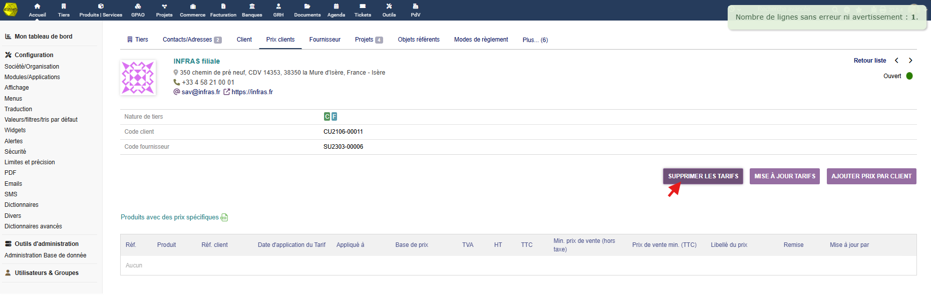 3.SUPPRIMER LES TARIFS D'UNE FILIALE
