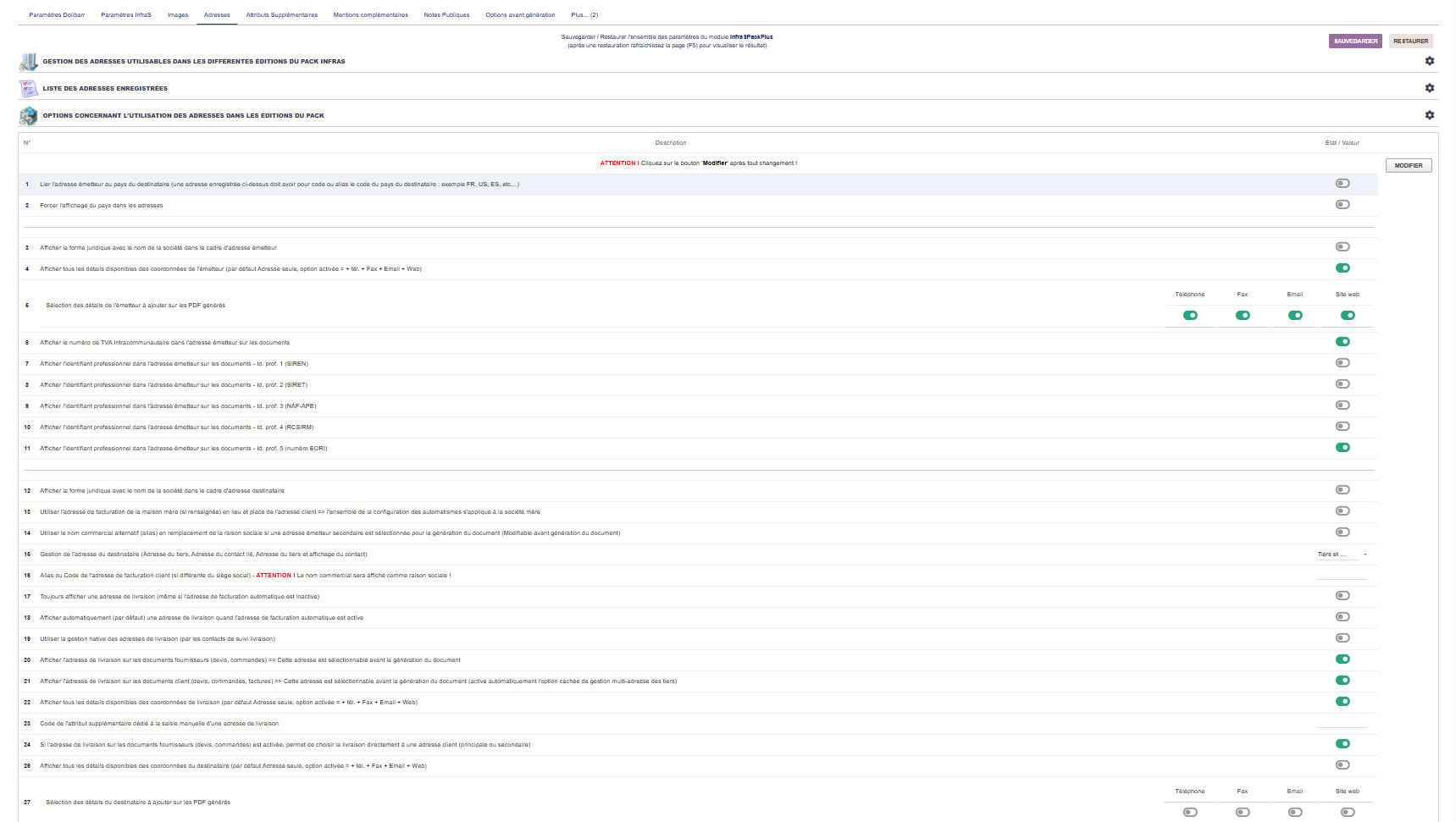 - Créer plusieurs adresses pour votre société