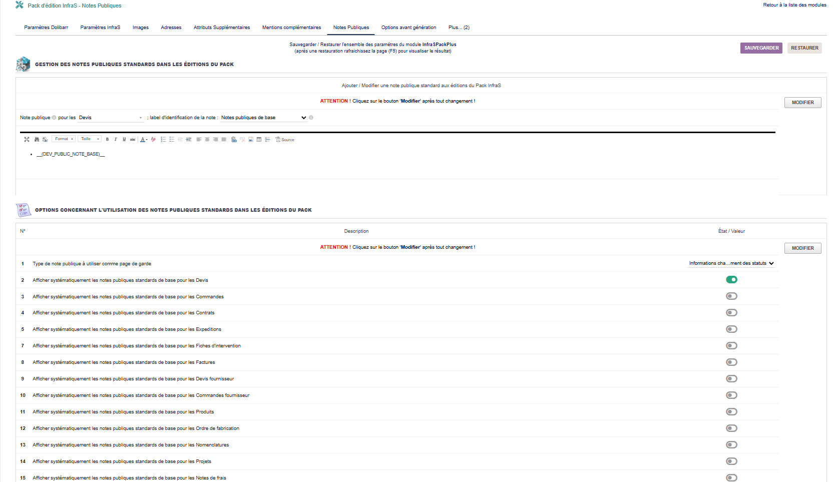 Les notes publiques standards permettent de créer des textes prédéfinis réutilisables qui s'ajoutent aux notes publiques de vos documents. Idéal pour des informations récurrentes.