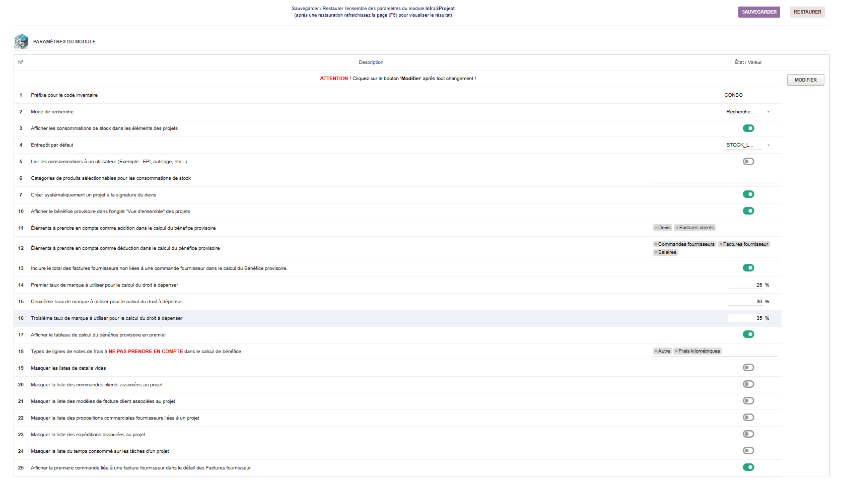 ParamĂštres du module :