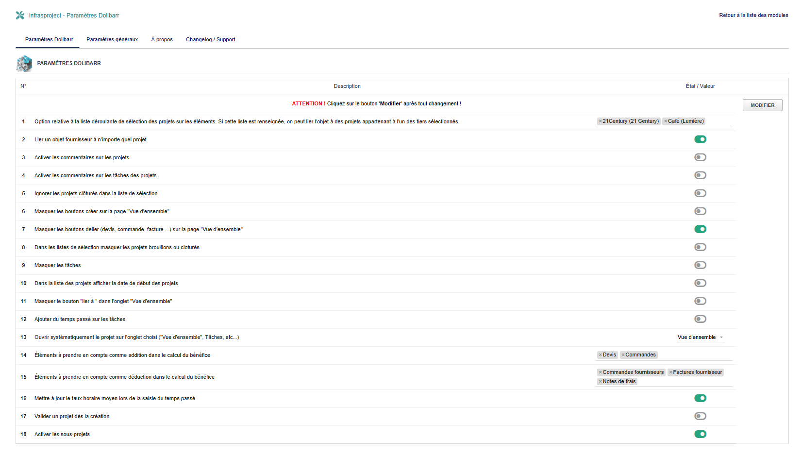 Configuration du Module
