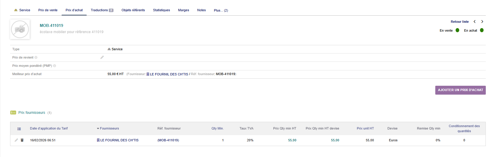 Si aucun tarif n'est défini : "Pas de tarif défini pour ce produit chez ce fournisseur et pour cette quantité minimum."