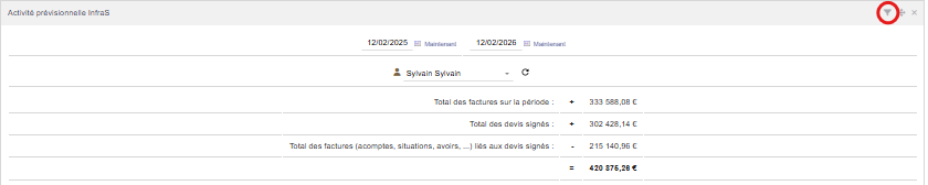 Chaque widget dispose de filtres accessibles via l'icône "Filtre" :