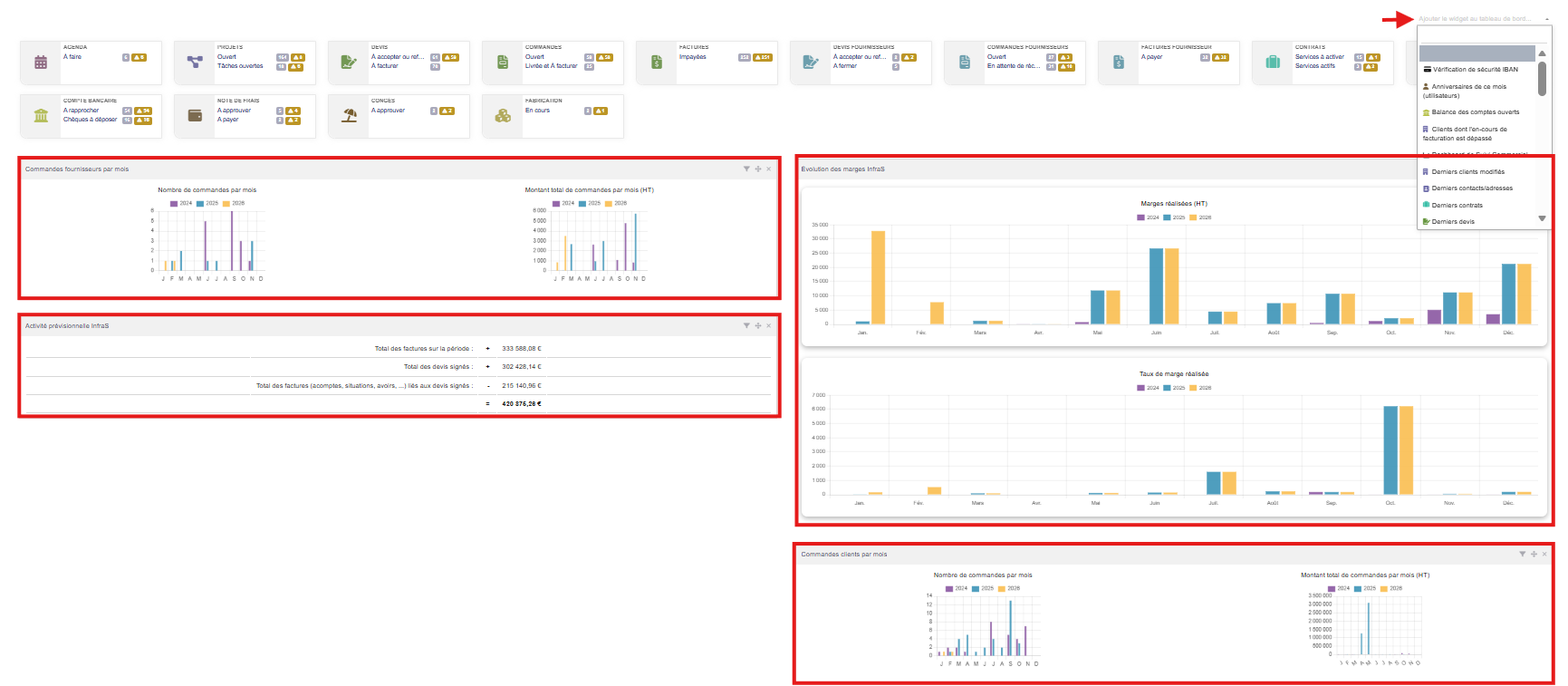 1.AJOUT DE WIDGETS AU TABLEAU DE BORD