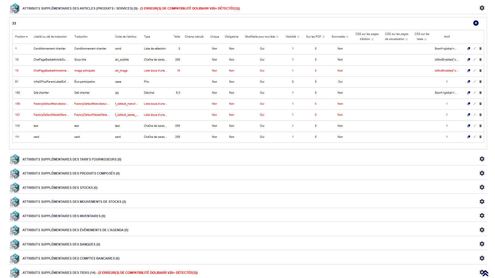 Avantage : Anticiper les problèmes de compatibilité avant une mise à jour majeure de Dolibarr. Vous pouvez corriger les attributs problématiques en avance.