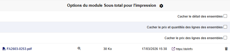 SUBTOTAL_HIDE_PRICE_DEFAULT_CHECKED - Masquer les totaux du document [Ligne 2] : Paramètre :