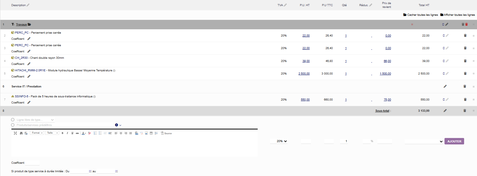 Note : Avec l'option SUBTOTAL_AUTO_ADD_SUBTOTAL_ON_ADDING_NEW_TITLE activée, les sous-totaux sont ajoutés automatiquement.